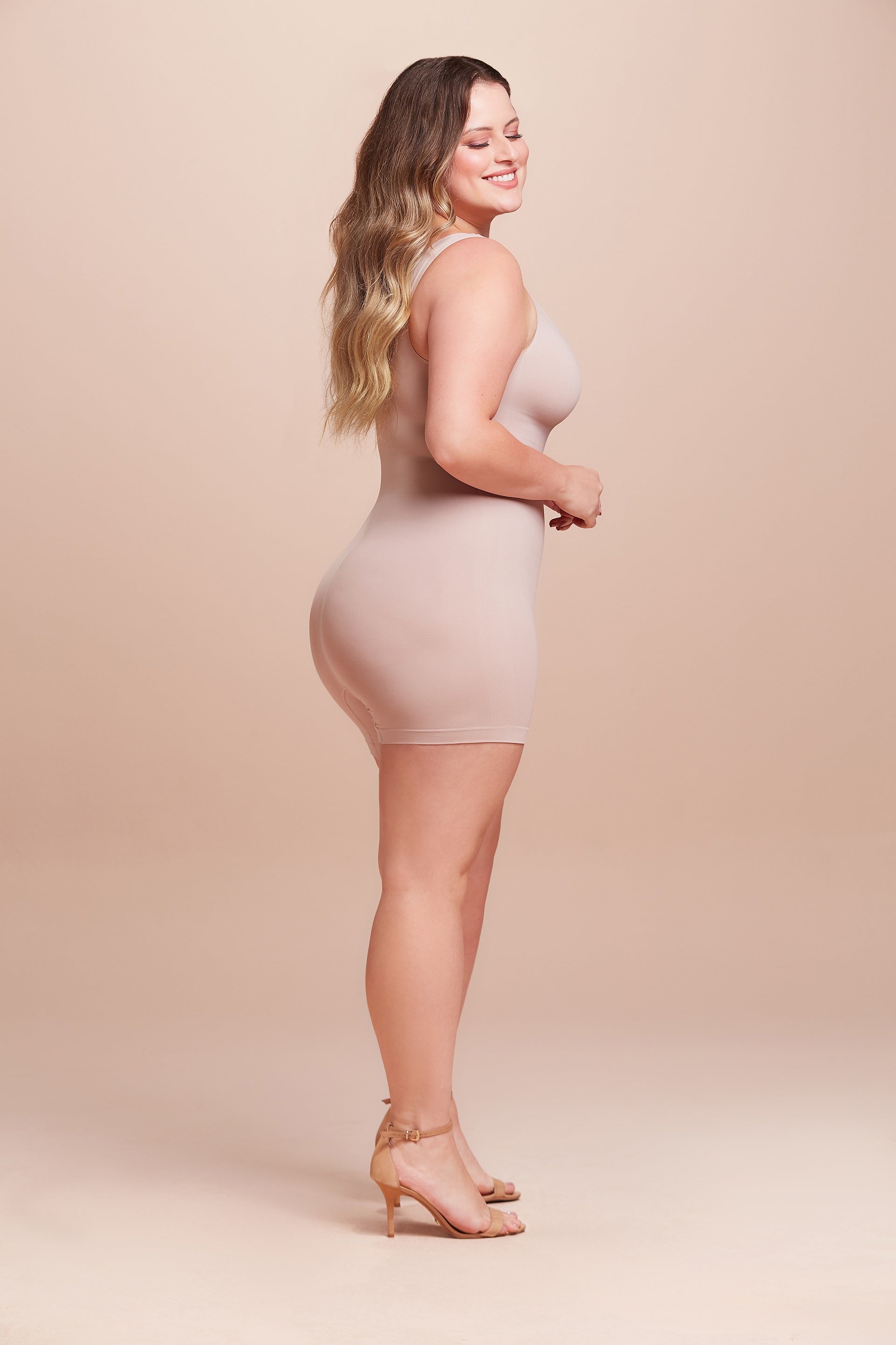 - Instantly shapes your bust, tummy, and thighs for a smoother silhouette